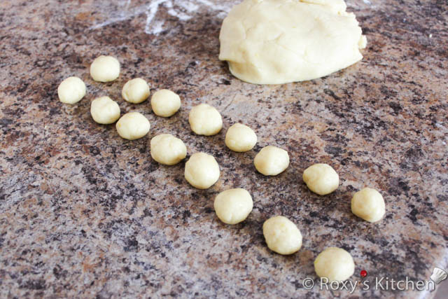 Filled Walnut Cookies - Dough is ready Filled Walnut Cookies - For my walnut mold I had to shape the dough into small balls that were close to 1cm in diameter (used about ¾ teaspoon of dough for each ball).