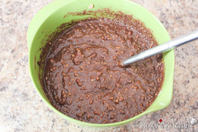 Add the ground walnuts over the soaked edges as well as the rum extract, cocoa, sugar, apricot jam and Turkish delight cut into small cubes. Mix well until all ingredients are combined.