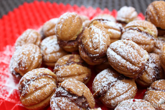 I have been looking for a cookie press like my mom used to have for so long. I found a walnut shell mold from House on the Hill, another mold from Golda’s Kitchen that you can place in the oven, but nothing like my mom’s cast iron mold. You can definitely use the other two molds to make these filled walnut cookies but I find that using the cast iron press on top of the stove it’s much faster and gives perfectly shaped walnut shells. Luckily I went back home to Romania this Fall, the only place I knew for sure I would find this cookie press… and now I have not one but two of them, each one having slightly different shapes – from walnuts to mushrooms to clam shells. In this recipe I’m using the first cookie press that has only the walnut shapes. These beauties are delicious and will definitely impress your guests. And since winter holidays are just around the corner I must say – these cookies would be a great addition to your holiday cookie tray :)!