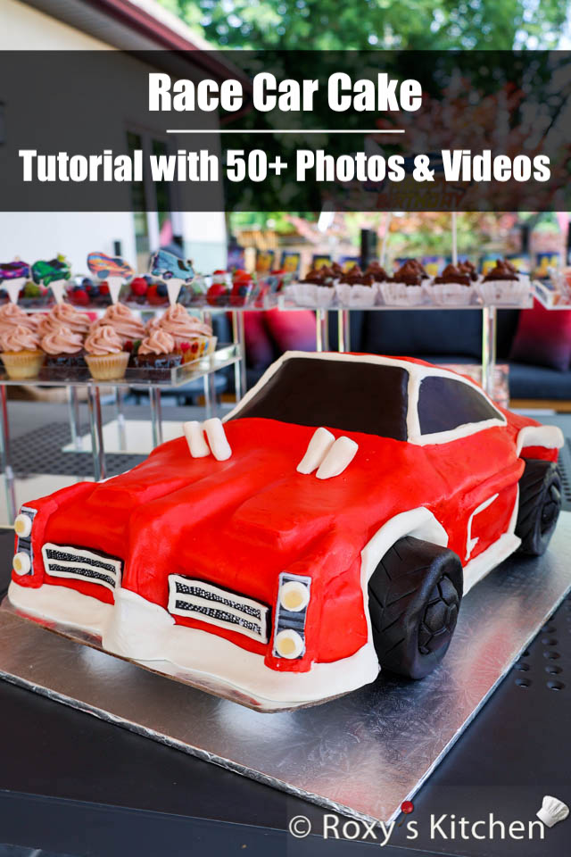 In this post, I’ll show you how to make a Car Cake with Remote-Controlled Headlights. My kids are Rocket League fans so I threw race car-themed birthday parties for them. I made two car cakes, along with cupcakes and race car-themed cakesicles to match the theme. I’ve already posted a tutorial showing how I made the Red Race Car cake (does it look like Dominus ?). In this post, I’ll walk you through how to create this Fuchsia and Golden Race Car cake (does it look like Fennec?), complete with headlights that can be turned on and off using a remote.