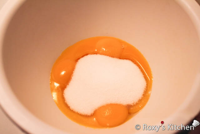 Mix together the flour and the baking powder. Combine the dry mixture with the egg yolks.